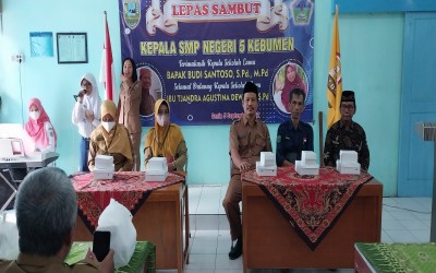 Lepas Sambut Kepala Sekolah SMPN 5 Kebumen Terima Kasih Kepala Sekolah Lama Bapak Budi Santoso, S.Pd., M.Pd Selamat Datang kepala Sekolah Baru Ibu Tjandra Agustina Dewanti, S.Pd.