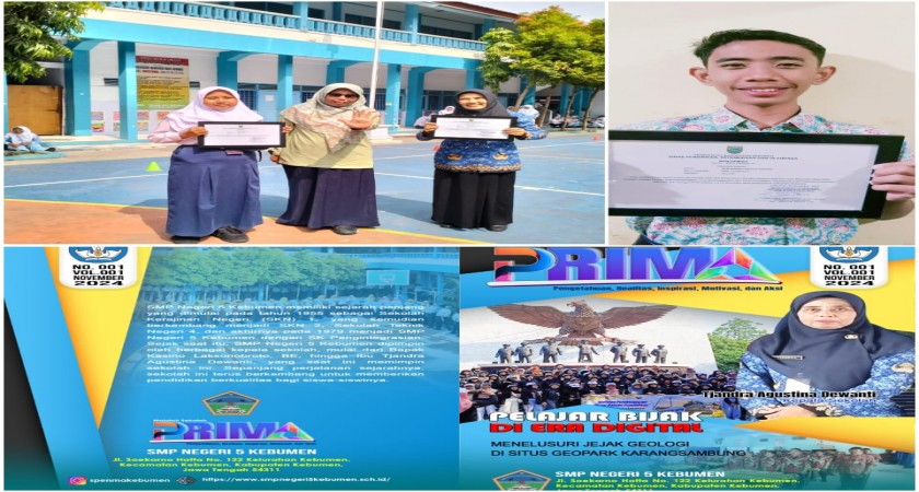 Selain itu, dalam momen istimewa ini, SMP Negeri 5 Kebumen juga meluncurkan Majalah Sekolah 'Prima.' Peresmian majalah tersebut dilakukan oleh Kepala Sekolah, Ibu Tjandra Agustina Dewanti, S.Pd., M.Pd., sebagai wujud komitmen sekolah dalam mengembangkan literasi di kalangan siswa dan guru.